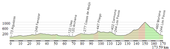 Por cierto, observando el perfil de la Marcha Sierras de Moratalla, hemos de comentar que un final en esta localidad con el mismo itinerario resultaría espectacular, con tres puertos enlazados en la parte final y un rápido descenso a meta por Los Alamos.