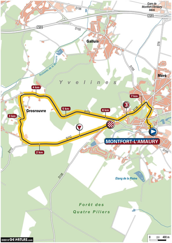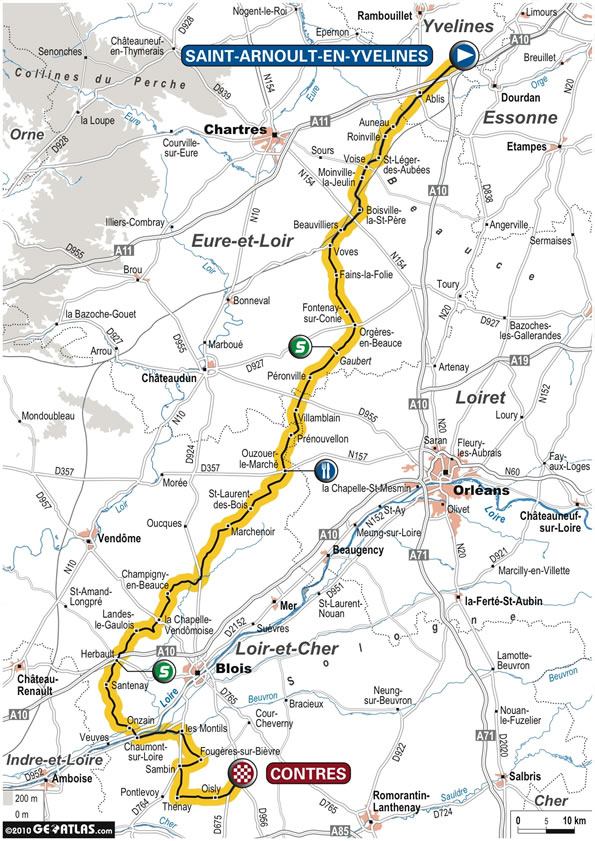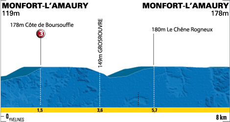 1ª ETAPA (Lunes 8 Marzo): SAINT ARNOULT EN YVELINES – CONTRES (201,5 km). Rutómetro / Últimos 5 km