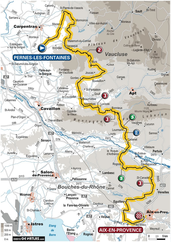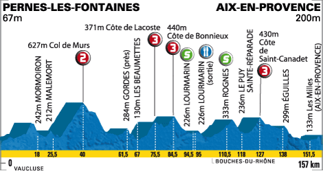 5ª ETAPA (Viernes 12 Marzo): PERNES LES FONTAINES – AIX EN PROVENCE (157 km). Rutómetro / Últimos 5 km