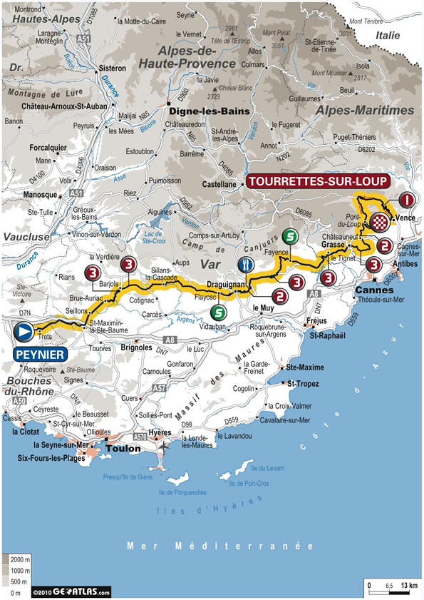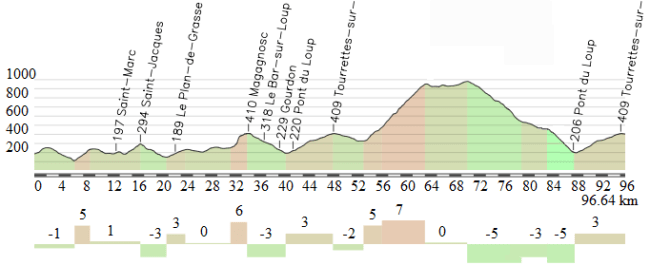 6ª ETAPA (Sábado 13 Marzo): PEYNIE – TOURRETTES SUR LOUP (220 km). Rutómetro / Últimos 5 km