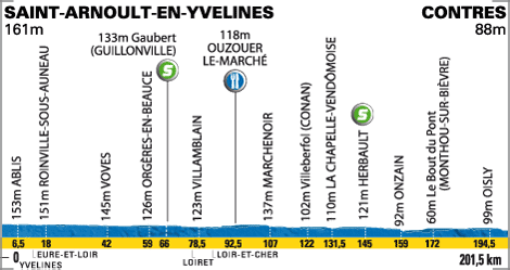 La segunda etapa, con salida en S.Arnoult en Yvelines y llegada en Contres, es la única jornada completamente llana de todo el recorrido, así que los sprinters no deberían dejar pasar esta oportunidad.
