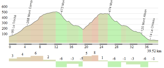 - Côte de Barjols, 3ª (km 38): 1,7 km – 4,2 %