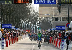 Pellizzotti entrando victorioso en Limoges en la París-Niza 2007. Foto perteneciente a A.S.O. / Jean-Christophe Moreau