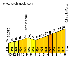 - Col de la Porte, 1ª (km 51): 7,2 km – 7,2 % (no cuentan el primer repecho)
