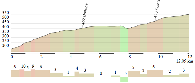 La ascensión final a Martinie dará emoción a los últimos km, pero no deja de ser un repecho, como mucho un puerto de 4ª, que la organización ha inflado de categoría de un modo incomprensible marcándolo como un puerto de 2ª.