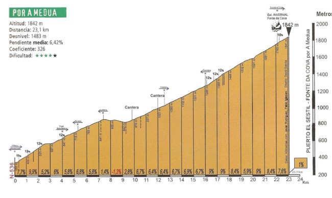 En cualquier caso, se considere como un único puerto o como dos, lo triste es que una ascensión tan impresionante como Fonte da Cova siga inédita en la Vuelta, al igual que la mayoría de puertos de la Cabrera: Llano de las Ovejas, Peñón, Piedrafita, etc… Ójala en los próximos años cambie esta situación y empiecen a aprovechar la zona.