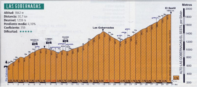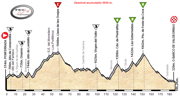 Creo que la etapa es brutal y se va por encima de 5000 metros de desnivel y con Sestil (Hc), Virgen del Valle (1) , Llano de las Ovejas (Hc) y Redondal (Hc o 1ra) más Gobernadas, Piedrafita y El Acebo de 2da y 3ra y los Rompepiernas hasta Corporales. Me parece bestial.