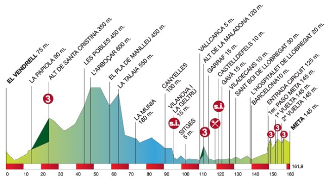 Etapa 6: Sábado, 27 de Marzo de 2010, EL VENDRELL – BARCELONA, 161,2 Km. Rutómetro