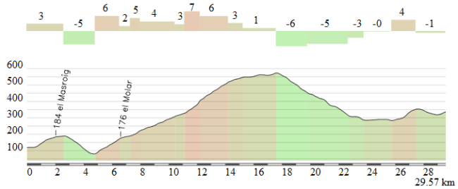 Los últimos 30 km de la etapa, con la subida a La Figuera/Traginers y varios repechos.
