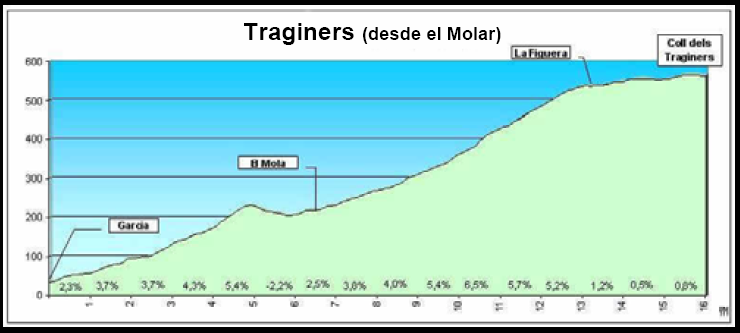 El Coll de Traginers (solo desde El Mola, ya que se llegará hasta ahí por otra carretera) es el puerto clave de la jornada, pero sus rampas son suaves, con solo un km de cierta dificultad.