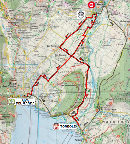 1ª ETAPA (Martes 20 Abril): RIVA DEL GARDA – TORBOLE SUL GARDA (C.R.I.) (12,5 km). Rutómetro / Últimos km.