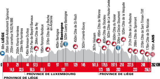 De las clásicas que se disputan integramente por carreteras asfaltadas, seguramente sea la más dura y exigente (aunque el Giro de Lombardía, con menos subidas pero más largas, no le va a la zaga). El recorrido ha ido variando a lo largo de los años, tanto de trazado como de kilometraje, pero se ha asentado en torno a los 260 km e incluyendo una buena cantidad de cotas: subidas cortas pero en ocasiones de gran pendiente como las famosas Stockeau, La Redoute y Saint Nicolas, o el gran descubrimiento de los últimos años: la Roche aux Faucons (la Roca de los Halcones).
