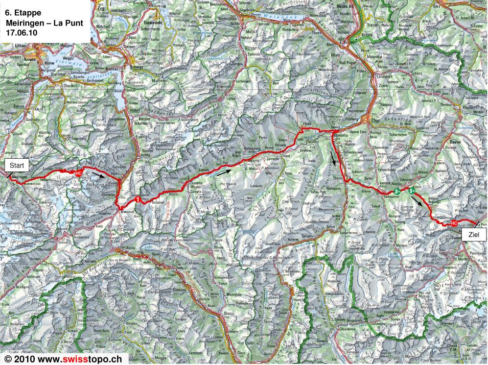 Sin lugar a dudas, la etapa reina de la Vuelta a Suiza 2010: 213 km de recorrido, alrededor de 4.800 m de desnivel acumulado y un coloso como Albulapass a menos de 10 km de la llegada. Una jornada absolutamente clave para la clasificación general.