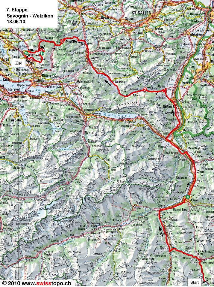 7ª ETAPA (Viernes 18 Junio): SAVOGNIN – WETZIKON (204,1 km). Rutómetro / Recorrido en 3D