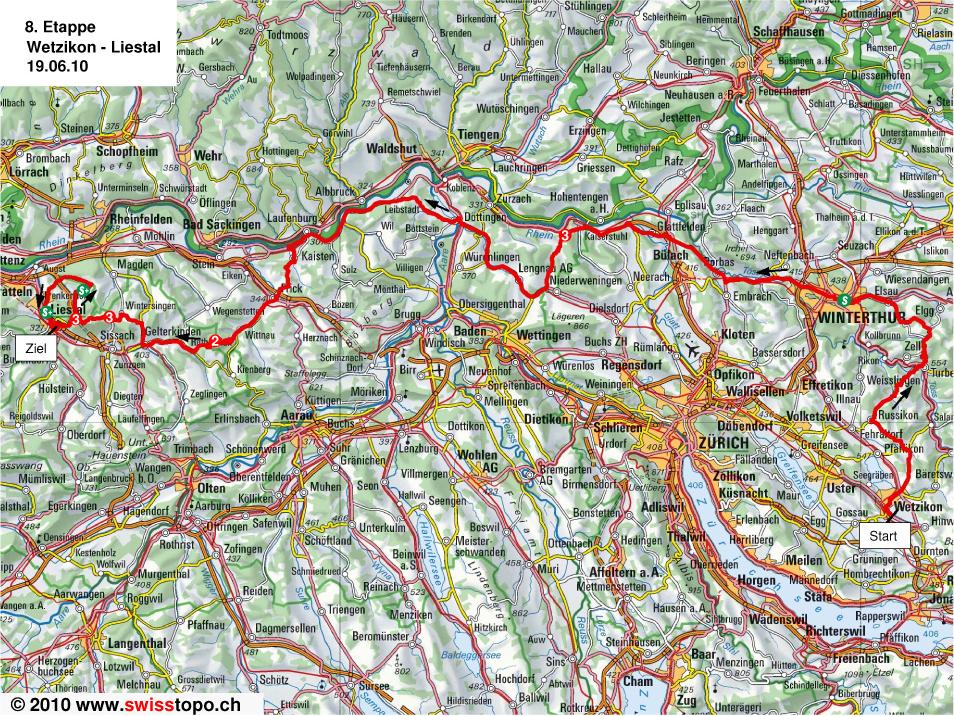 8ª ETAPA (Sábado 19 Junio): WETZIKON – LIESTAL (172,4 km). Rutómetro / Recorrido en 3D