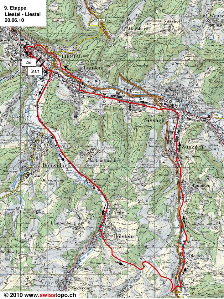 9ª ETAPA (Domingo 20 Junio): LIESTAL – LIESTAL (C.R.I.) (26,9km). Rutómetro / Recorrido en 3D