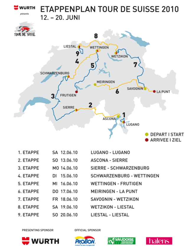 Este fin de semana, solapándose con las últimas etapas del Critérium del Dauphiné, empieza otra de las grandes carreras por etapas de la temporada, la Vuelta a Suiza: 9 etapas (del 12 al 20 de junio) recorriendo el «país de los Alpes» en la que podría considerarse sin duda como la 4ª vuelta nacional más importante, después de Tour, Giro y Vuelta.