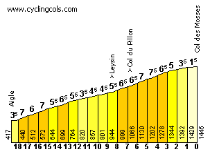 - Col des Mosses, 1ª (km 84,4): 1.445 m – 18,3 km – 5,6 %. Galería fotográfica