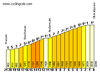 - Oberalpass -desde Wassen-, 1ª (km 67,7): 2.044 m – 18,9 km – 5,65 %