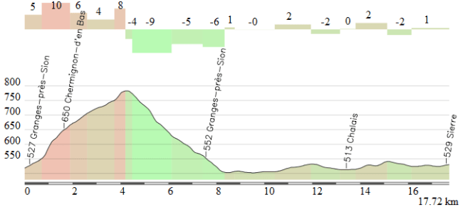 Circuito de Sierre alternativo, manteniendo el paso por Rechy para el Sprint bonificado pero con Anzere (1) + Crans Montana (1/2). El kilometraje total de la etapa rondaría los 205 km.