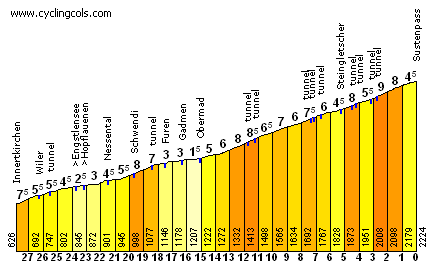 - Sustenpass, HC (km 28,5): 2.224 m – 27,9 km – 5,7 %. Galería fotográfica