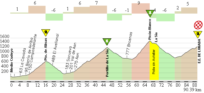 El secreto de esta etapa consiste en el desgaste de la larguísima subida a La Sia y en el circuito final Selaya-Vega de Pas-Guzparras-Selaya, con el alto de Guzparras que cuenta con unos 5km iniciales entorno al 7’5-8% y con un km por encima del 10%, una trampa antes del rápido descenso a Selaya.