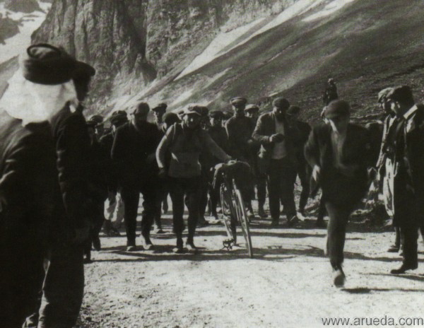 Eso reactivó la prueba … aunque sólo sería un aperitivo de lo que sucedió en 1910: el estreno de los Pirineos. Fueron 2 etapas brutales, sobre todo teniendo en cuenta las condiciones de aquella época (carreteras sin asfaltar, bicicletas sin cambios, preparación de los corredores, etc): Perpiñán – Luchon, 289 km con Port, Portet d´Aspet y Ares, y especialmente Luchon – Bayona, 326 km con Peyresourde, Aspin, Tourmalet, Aubisque y Osquich. Durante esta 2ª etapa, al coronar el Aubisque, se produjo el famoso grito de Octave Lapize en contra de los organizadores: «¡Asesinos!». En este artículo se puede rememorar la gestación y desarrollo de esa etapa mítica: Memoria de un asesinato.