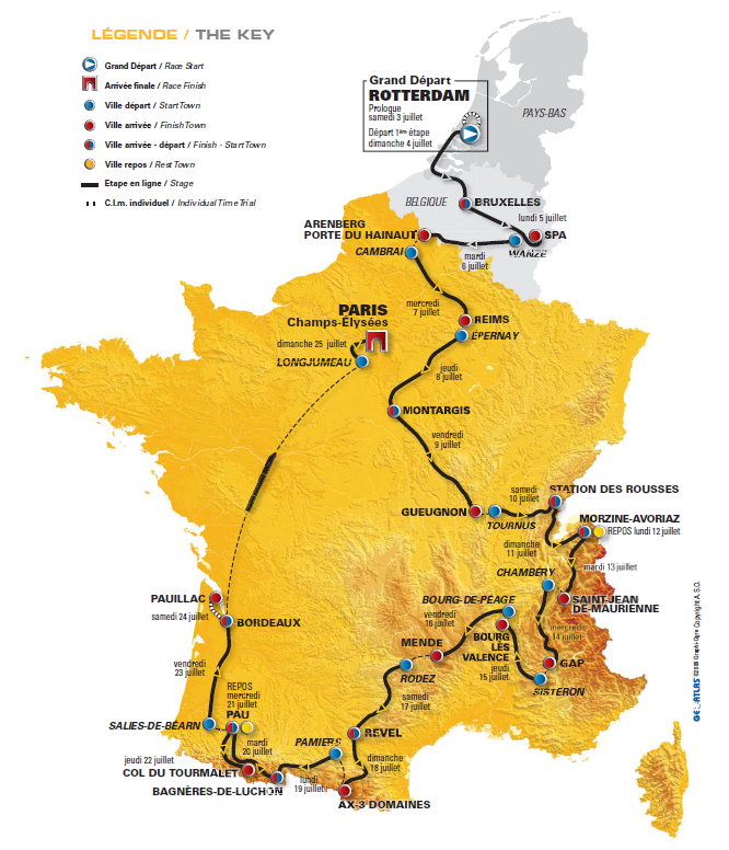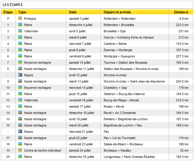 En ese sentido, nos parece muy acertada la apuesta por la media montaña, con 4 etapas a priori muy interesantes: Spa (4ª), Station des Rousses (7ª), Gap (10ª) y Mende (12ª). Y en el caso de la jornada de Gap, atención a la posibilidad de fuga-bidón. Además, este aumento de la media montaña respecto a otros Tours no se hecho a expensas de la alta montaña, sino reduciendo el nº de etapas llanas.