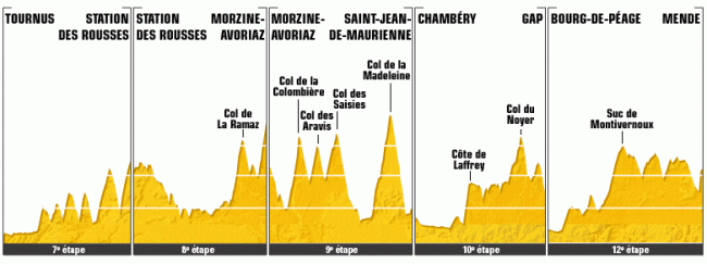 No hay ni un sólo gran puerto novedoso, cuando resulta que varios de ellos estaban “a huevo” y hubieran mejorada claramente las etapas, especialmente Parquetout en la jornada de Gap (10ª) y Viscos en la del Tourmalet. Eso si, también hay que reconocer que varios puertos se utilizan de un modo diferente al habitual, como la Madeleine (etapa de S.J.Maurienne), y otros se recuperan después de mucho años: Laffrey, Noyer y Soulor norte.