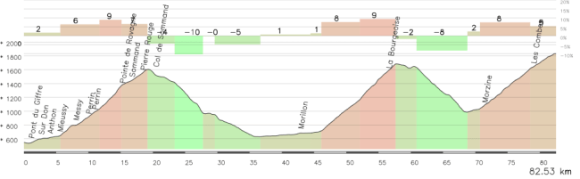 - Côte de Bouhy, 4ª (km 69,5): 349 m – 2.9 km – 4 %