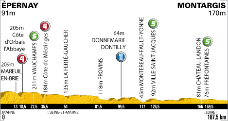 5ª ETAPA (Jueves 8 Julio): ÉPERNAY – MONTARGIS (187,5 km). Rutómetro / Últimos km