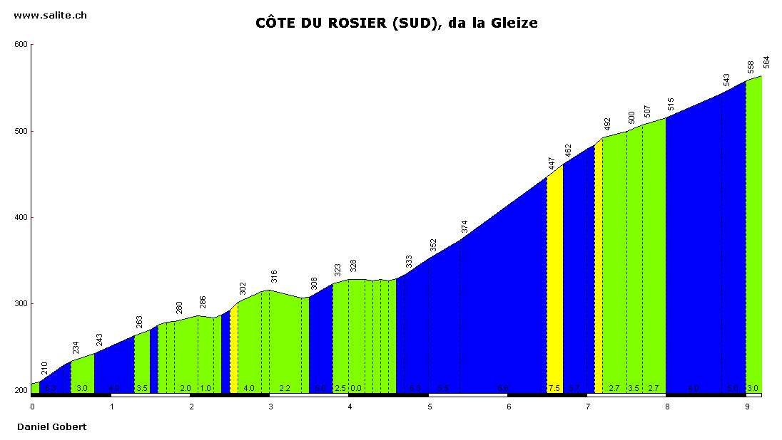 - Côte de Grésin, 4ª (km 73): 523 m – 4.3 km – 3.9 %