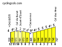 - Port de Balès, HC (km 166): 1.755 m – 19.3 km – 6.1 %