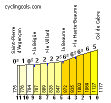 - Côte de Pellafol, np (km 120,5): 915 m – 2 km – 6 % (*datos aproximados del tramo inicial, despues sigue subiendo ligeramente)
