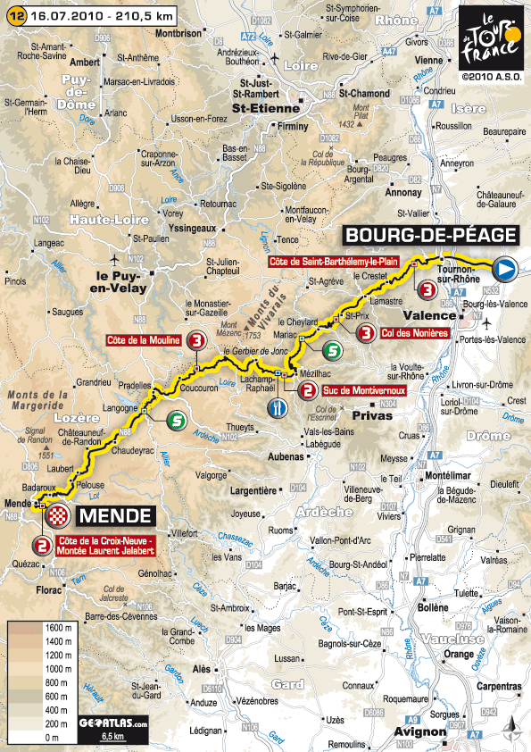 12ª ETAPA (Viernes 16 Julio): BOURG DE PÈAGE – MENDE (210,5 km). Rutómetro / Últimos km