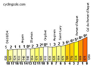 En los primeros 30 km los corredores tendrán que afrontar dos pequeñas cotas, Le Pal y Carla Bayle (aunque sólo puntúa la segunda). A partir de ahí el terreno será más o menos llano hasta llegar al Portet d´Aspet, uno de los puertos que se estrenaron en la edición de 1910 y desde entonces un clásico en el Tour. Lo más duro está justo al final de la ascensión, con 2 km al 9% de media.