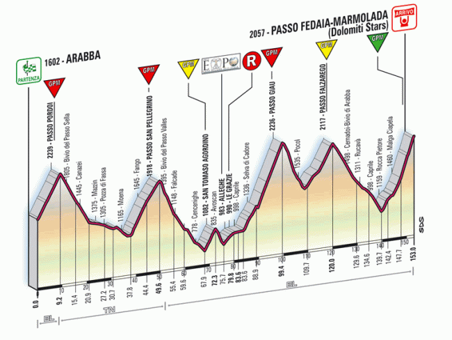 Dolomiti Stars patrocinó varias etapas de montaña del Giro, entre ellas esta etapa con final en la Marmolada del Giro 08.