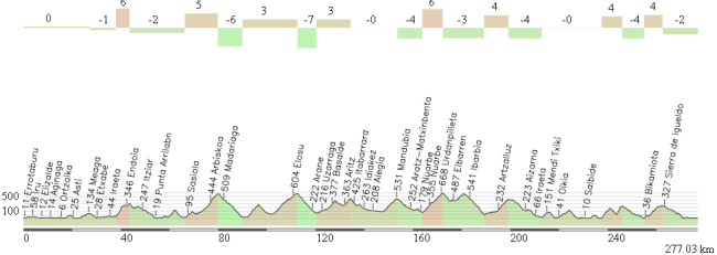 • Alto de Arkale, 2,7 Km. al 6,3% en los kilómetro 178,5 y 219