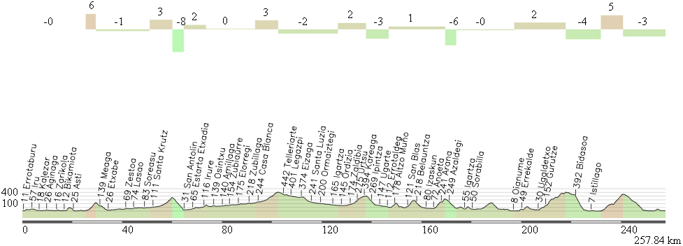 No obstante esta modificación no ha supuesto un aumento de la distancia de carrera, más aun se produce una reducción de tres kilómetros respecto a la edición de 2009. Esto se debe a la supresión de los pasos por los puertos de Azkarate y Udana, en la primera mitad del recorrido, así como el paso por localidades de gran importancia en la provincia de Guipuzcoa como Elgoibar, Bergara, Oñati o Legazpi.