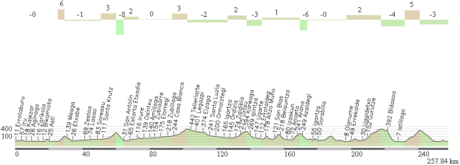 • La falta de desgaste previo a la llegada al primer paso por Jaizkibel, sin apenas dificultades orográficas, pues únicamente se salvan los altos de Orio y Garate, cuya categoría resulta inflada.