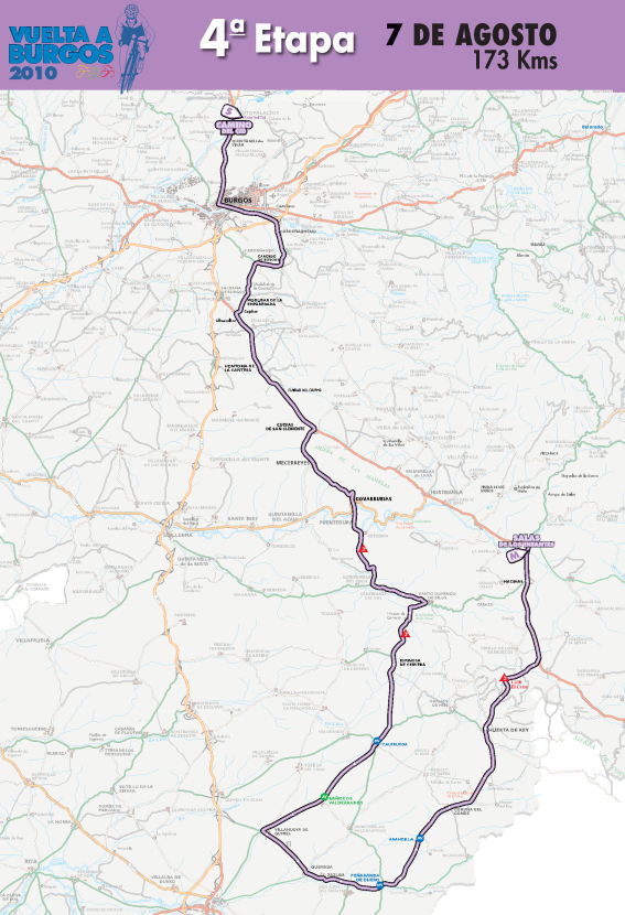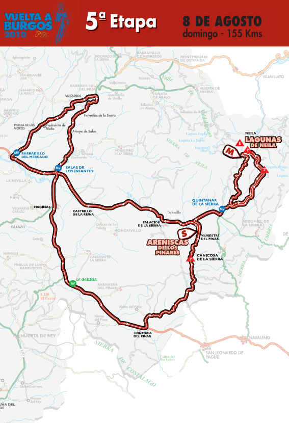 El recorrido de este año es similar al de 2009, de hecho se repiten los 2 finales en alto: San Juan del Monte (2ª etapa) y Lagunas de Neila (5ª), este último en una etapa idéntica a la de 2008 y 2009. La principal novedad es la contrarreloj por equipos de la 4ª jornada … y en este caso creemos que es precisamente el mayor error del recorrido, ya que en una prueba tan corta una C.R.E. de 20 km puede condicionar demasiado la carrera a favor de los equipos fuertes, perjudicando a los corredores que militen en conjuntos más modestos. Una C.R.I. de esa misma distancia habría tenido mucho más sentido. Las otras 2 etapas restantes, Medina de Pomar (1ª) y Salas de los Infantes (4ª) tienen un pequeño puerto a 20-25 km de meta y pueden resultar muy entretenidas, aunque al igual que sucede en la etapa de San Juan del Monte había mejores opciones para los km finales. De nuevo, la carrera se queda sin una gran etapa aparte de la de las Lagunas de Neila.