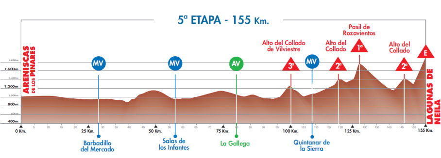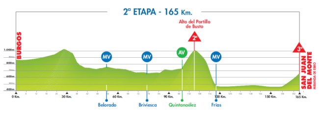Una etapa similar a la 1ª jornada, e igualmente de difícil pronóstico. A priori es favorable para los sprinters pero el trazado quebrado y el último puerto, a 18 km de la llegada, dan también posibilidades a una escapada lejana o a corredores que intenten sorprender cerca de la meta. En cuanto a los favoritos a la general, en principio jornada de transición en vísperas de la etapa reina de Las Lagunas de Neila … aunque no pueden despistarse.