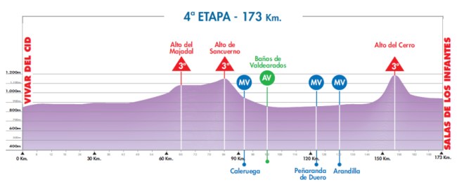 Etapa sin grandes puertos pero con varias cotas de 3ª, la última a sólo 18 km de la línea de meta en Salas de los Infantes. Aparte del aspecto puramente deportivo, la jornada servirá para promocionar el Camino del Cid, del que se recorre la parte inicial. De hecho Vivar del Cid, salida de la etapa, es supuestamente la localidad donde nació Rodrigo Díaz de Vivar, “El Cid”.