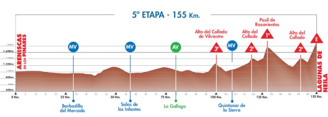 Una dura etapa de montaña y más que aceptable jornada reina para una carrera de 5 días, con varios pequeños puertos y la doble ascensión a Las Lagunas de Neila, que aunque no se haga hasta arriba en el primer paso ya tiene 3 km cercanos al 9% que permiten romper la carrera desde lejos.