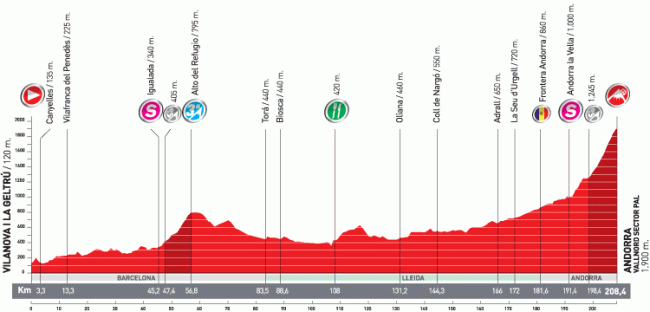 El primer final en alto «puro» de la Vuelta 2010 llega en una etapa larga aunque sin apenas dificultades previas, con salida en Vilanova I La Gertru y la meta situada en la estación de esquí de Vallnord: sector Pal.