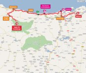 Los primeros km son completamente llanos pero enseguida se entra en un terreno rompepiernas, con la carretera paralela al mar y teniendo que superar constantes repechos, siendo el más destacable el Alto de Ubiarco: 4 km al 4,3% de media pero con tramos duros. Será a la altura del km 90-95 de la etapa, pasado el repecho de Colombres (2 km al 5,2%), cuando el terreno suavice aunque sin llegar a ser totalmente llano.