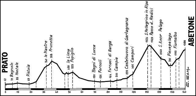 Los protagonistas absolutos de esta etapa fueron Francesco Casagrande y el durísimo San Pellegrino in Alpe, perfectamente colocado y enlazado antes del suave final en alto en Abetone, un mito donde los haya pero de escasa dureza (no mas de un 2ª), en una perfecta muestra del tipo de etapa «puerto duro + final en alto blando», que tanto alabamos y queremos ver en la Vuelta.