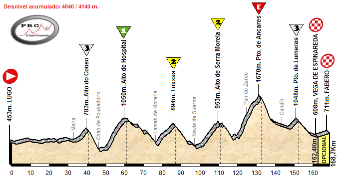 Las dos etapas tienen muy buena pinta. Ambas acaban en Degrada, ¿no?. Por la altimetria, el puerto que aparece antes (Sete Carballos) debe rozar casi la categoría especial.