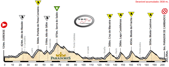 2. Felicidades por la etapa ya que me gusta mucho este recorrido. Conozco toda esta zona ya que soy de Pontevedra y puedo decir que son puertos realmente cortos pero duros por sus duras rampas. La verdad la etapa de Pontevedra que han diseñado para la Vuelta a España más llana no la podrían diseñar ya que la vuelta al salnes es el encadenado de kilometros (50-60) más llanos que puedes hacer si quieres dar un paseo en bici desde Pontevedra una mañana.