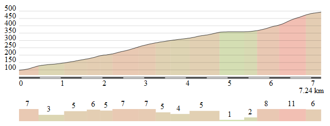 • Col de La Grange du Bois, np (km 7):  525 m – 5,5 km – 5 %